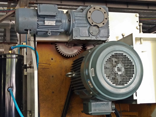 本机主轴驱动采用双边各一台22KW6级电机驱动,保证在封口过程中提供强力扭矩,保证封口质量。