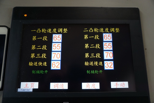我公司经过多年的研究和攻关,近期已研制成功了封口轮进给机构PLC程序化控制和进给参数人机对话触屏控制。实现了操作人员根据实际运行状态对封口过程进行有效调节,可使卷边结构更加合理,同时在产品切换时,封口轮位置调整更加高效,设备效率大大提高。解决原凸轮机械结构进给时间曲线无法调节,封口轮位置调整工人爬上爬下耗时又不安全等几大困扰问题。是制桶设备的一次重大革新。
